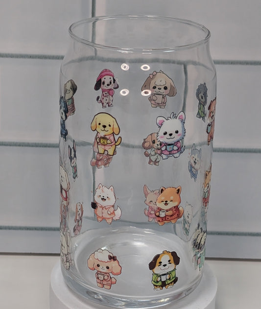 Dogs with a Cuppa Glass, 16oz, Libbey Glass